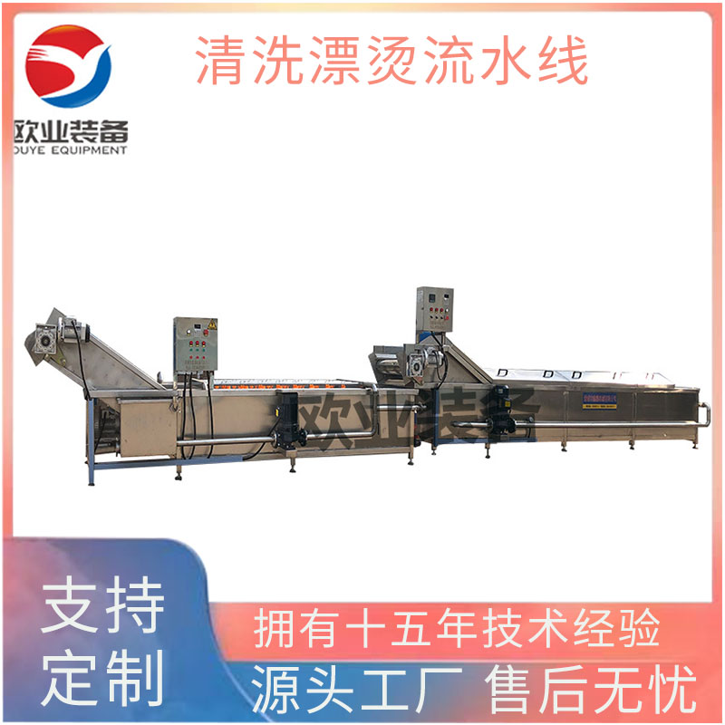 漂燙殺青流水線主要用于蔬菜的綠色殺菌處理,具有快速殺青、抑酶護色及時脫水冷卻的特點,能夠使果蔬保持原有的自然色澤。該設備通常由304不銹鋼制成,采用蒸汽或導熱油加熱,確保設備的安全性和耐用性。
