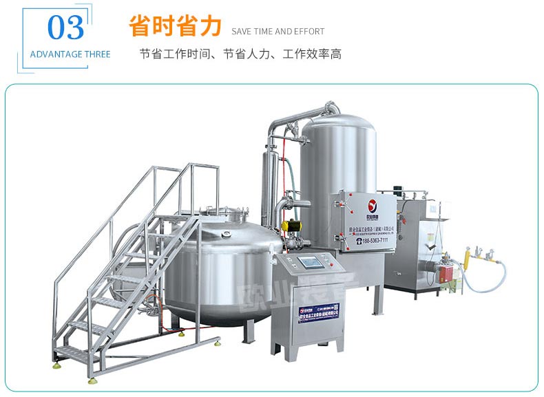 保證產品天然綠色。生產產品的時候,在給不銹鋼列管加熱的階段,該設備能夠迅速升溫,而且油溫恒定,保證了產品的色,香,味,形具佳。